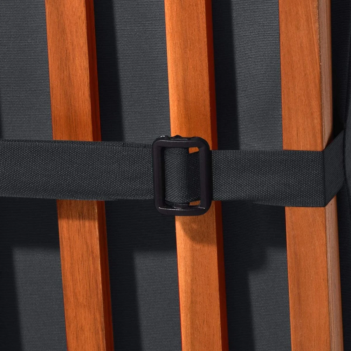Op de achterkant van de bovenste rugleuning en het onderste gedeelte bevindt zich telkens 1 bevestigingsband in de juiste kleur, waarmee het dekstoelkussen zeer eenvoudig kan worden bevestigd.