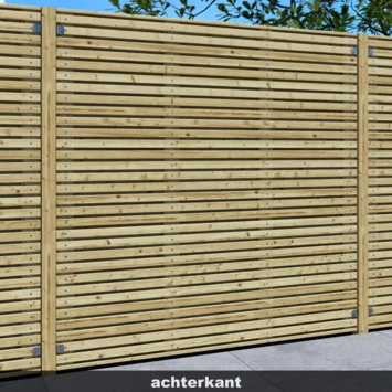 Het lattenscherm is vanaf één zijde geschroefd waardoor het scherm een voor- en achterkant heeft.